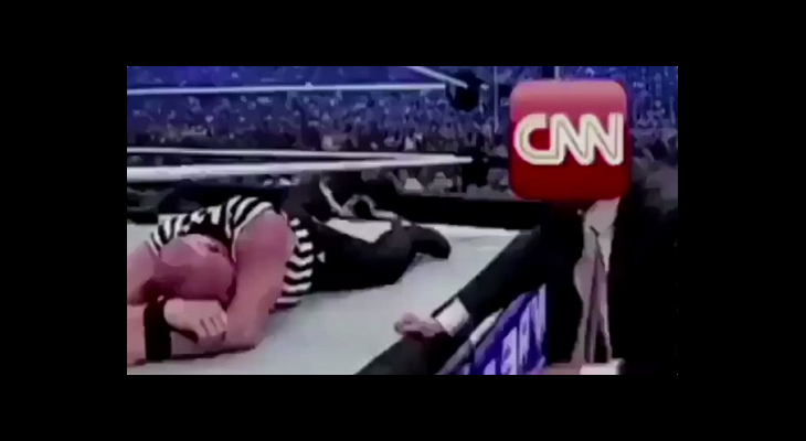 Donald Trump opublikował na Twitterze przeróbkę wideo z 2007 roku, na którym – podczas gali wrestlingu – bije Vince’a McMahona, CEO organizacji WWE. W miejsce głowy pobitego doklejono logo stacji CNN. Prezydent USA dodał hashtagi „#FraudNewsCNN” oraz „#FNN”, najprawdopodobniej odnoszące się do przeinaczonej nazwy: „Fraud News Network”.