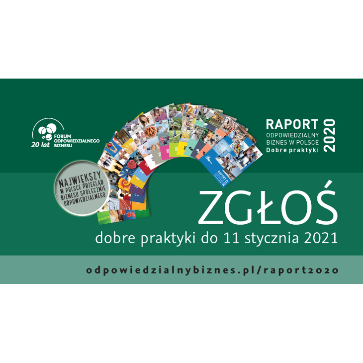 Forum Odpowiedzialnego Biznesu zaprasza do udziału w 19. edycji Raportu „Odpowiedzialny biznes w Polsce. Dobre praktyki”. Jeszcze do 11 stycznia 2021 roku można zgłaszać inicjatywy podjęte w 2020 roku. Rejestracja odbywa się przez formularz dostępny na stronie.