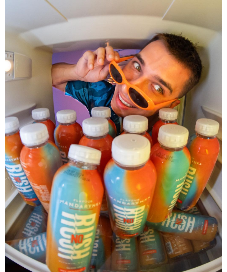 Karol Wiśniewski, popularny youtuber znany jako Friz, wprowadził do sklepów sieci Żabka nowy produkt – wody witaminowe NoRush w różnych smakach.