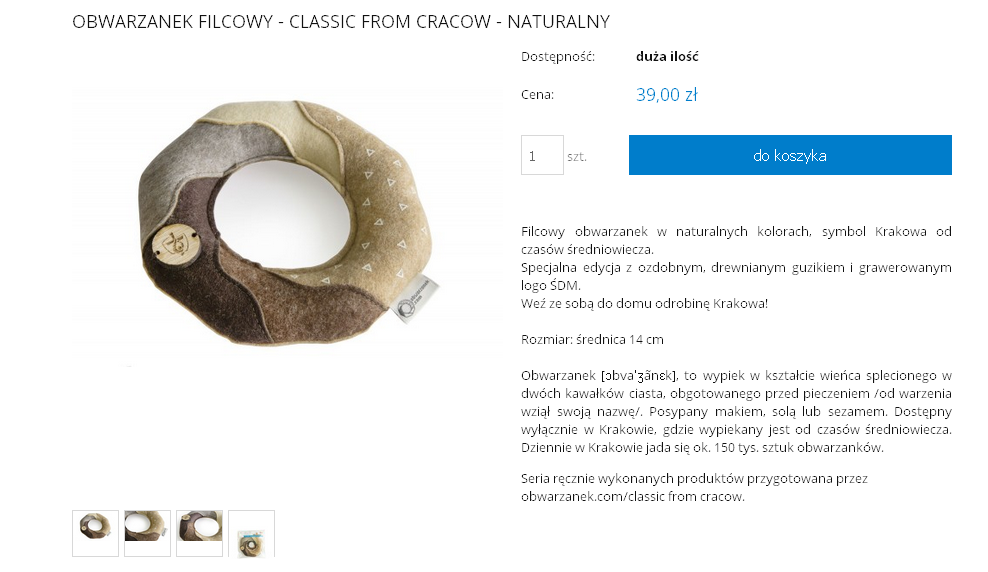 Wśród wybranych gadżetów znalazł się także filcowy obwarzanek. Jego producent podkreśla, że to „symbol Krakowa od średniowiecza”. „Do czego właściwie służy? Niech wyobraźnia was nie ogranicza – to dekor do zadań specjalnych” – czytamy dalej. Listę wybranych gadżetów zamyka plecak-worek na sznurkach.