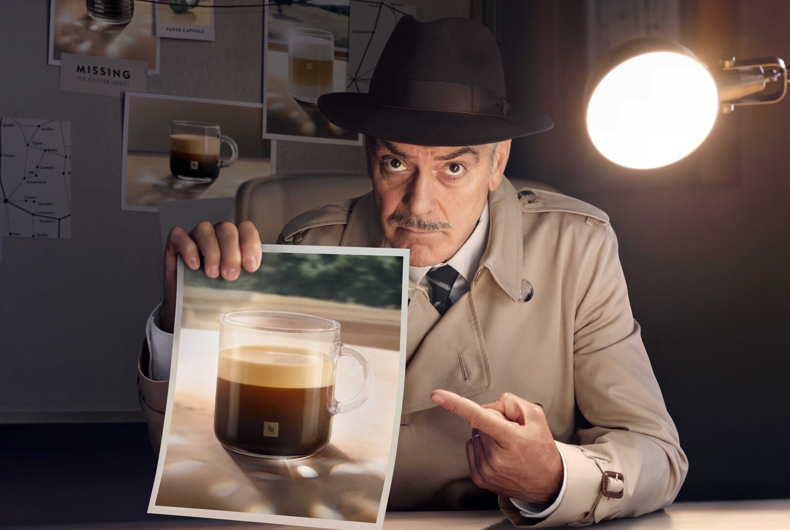George Clooney jest globalnym ambasadorem marki Nespresso. Tym razem wcielił się w rolę dociekliwego detektywa George’a. Reklama swoją formą przypomina kryminalną zagadkę pełną humoru, intryg i zwrotów akcji. Jak przekazują twórcy, produkcja ma być zaproszeniem do „odnalezienia najcenniejszego skarbu – niezapomnianego smaku świeżej kawy Nespresso”.