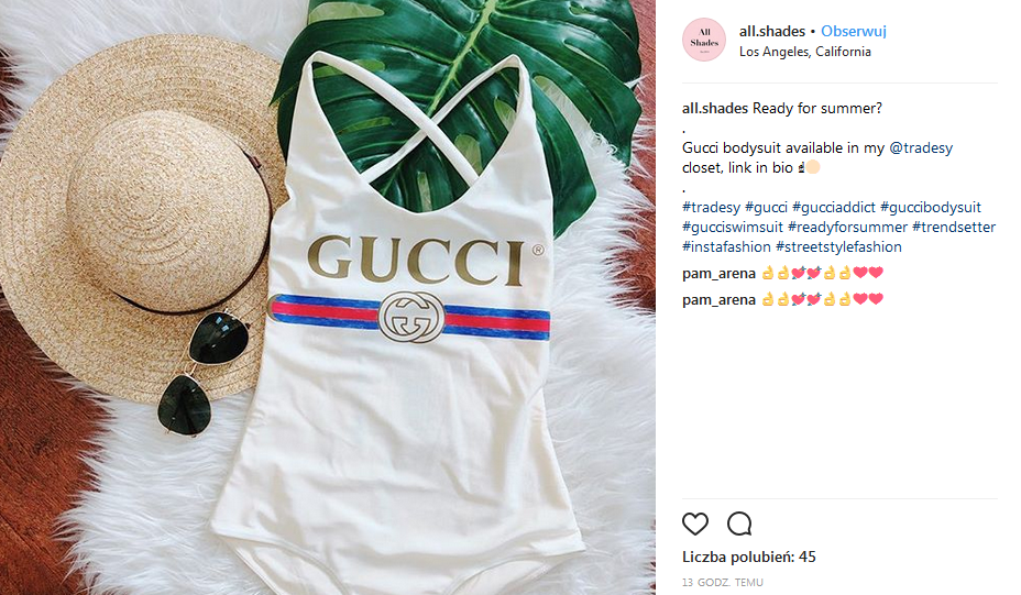 Włoski dom mody Gucci zaprezentował niedawno swój kostium kąpielowy z logo marki w stylu vintage. Cena produktu to 320 euro, czyli ponad 1300 złotych. Okazuje się jednak, że w stroju nie należy pływać – opisuje radiozet.pl.