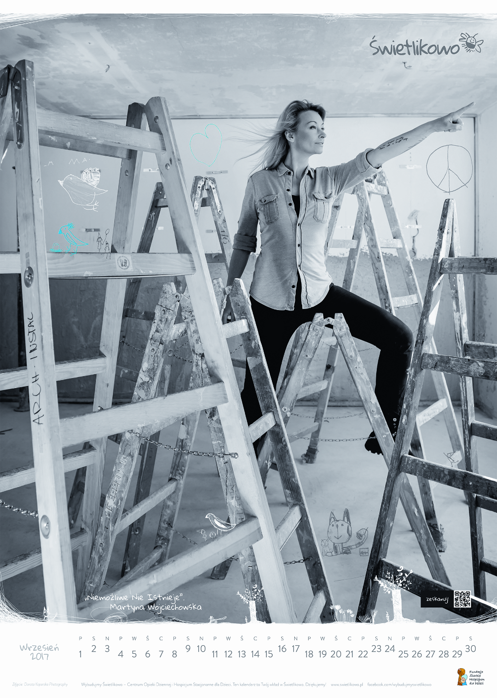 „Nasz kalendarz zaczyna się we wrześniu, bo nie mogliśmy czekać z jego realizacją do końca roku – podopieczni Hospicjum nie mają czasu. Kalendarz tworzony był w powstającym Świetlikowie. Do Hospicjum zaprosiliśmy wiele znanych osób, które inspirują nas i naszych podopiecznych. Każdy z gości przyjechał na budowę w Tychach. Gruz, pył i ówczesna »sceneria« Świetlikowa nikogo nie przeraziła. Prócz zdjęć, goście zostawili w Świetlikowie część siebie. Będą tu wracać. Tak działa magia tego miejsca” – komentuje Natasza Godlewska, prezes Fundacji Śląskie Hospicjum dla Dzieci, budującej Świetlikowo.