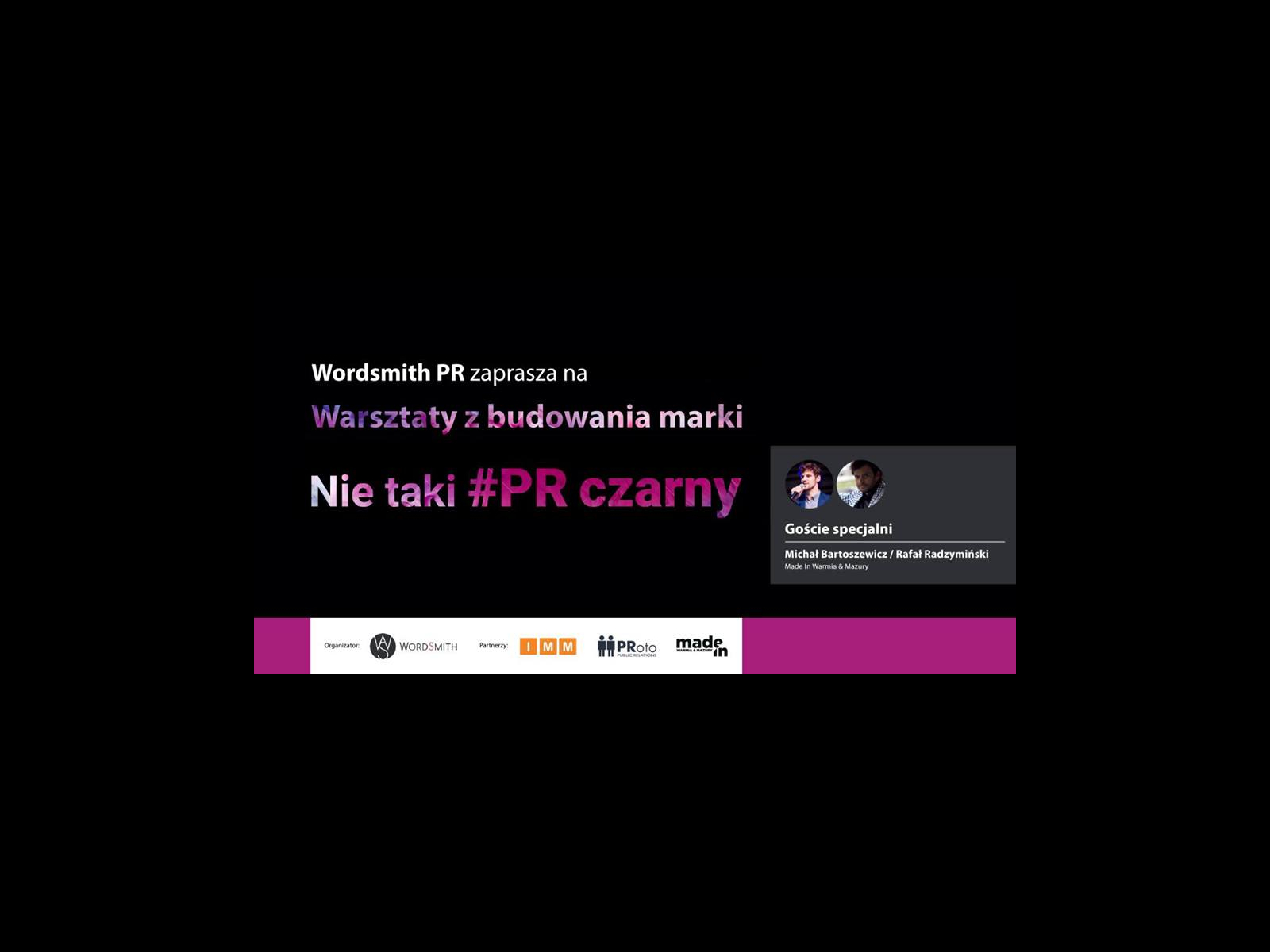 16 stycznia 2019 roku w Olsztynie odbędzie się trzecie spotkanie z cyklu „Nie taki #PR czarny”, poświęconego skutecznej komunikacji marek, skierowanego do przedsiębiorców, marketingowców i osób zajmujących się public relations. Organizatorem wydarzeń jest agencja Wordsmith PR.