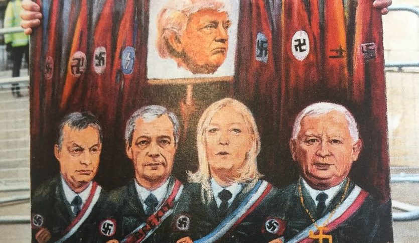 W tekście pt. „Świat znalazł się na krawędzi” dziennikarze opisują populistycznych polityków, którzy oczarowali wyborców w swoich krajach. Do materiału dołączono obraz przedstawiający Donalda Trumpa, Viktora Orbana, Nigela Farage’a, Marine Le Pen i Jarosława Kaczyńskiego. Politycy mają na sobie nazistowskie mundury ze swastyką na prawym ramieniu. Dodatkowo na szyi prezesa Prawa i Sprawiedliwości wisi złoty krzyż ze złamanymi ramionami. Redaktorzy przekonują, że rok 2017 będzie kluczowym dla przyszłości Europy Zachodniej. Ich zdaniem przejęcie władzy przez populistów na Węgrzech i w Polsce zapoczątkowało wyjątkowo groźny trend – czytamy.