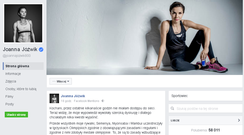 Wczoraj informowaliśmy o kontrowersjach, jakie wzbudziła wypowiedź Joanny Jóźwik dotycząca poziomu testosteronu jej rywalek. Biegaczka odniosła się do sprawy na Facebooku.