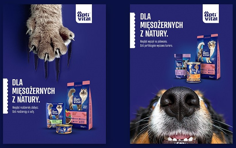 Centralnym punktem kampanii wprowadzającej Optivital na rynek ma być insight, że psy i koty pozostają mięsożercami z natury, choć ich codzienna rola uległa zmianie. W kreacjach wykorzystano takie detale jak pazury kota czy nos psa, które zestawiono z hasłami ukazującymi kontrast między instynktem a współczesnością: kot, który kiedyś drapał zdobycz, dziś drapie sofę, a pies, który dawniej polował, dziś wyczuwa kuriera.