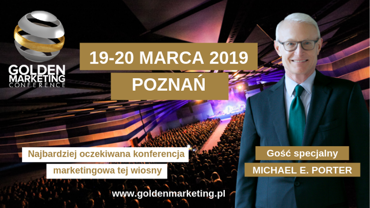 19 i 20 marca 2019 roku odbędzie się kolejna edycja Golden Marketing Conference, wydarzenia skierowanego do osób odpowiedzialnych za strategię rozwoju marki – członków zarządu, dyrektorów marketingu czy osób decyzyjnych. W czasie dwudniowego wydarzenia wystąpi 20 zaproszonych ekspertów, którzy poruszą tematy m.in. zastosowania marketing automation, biznesowych możliwości AI, Google Ads i Google Analytics czy budowania nieszablonowych strategii marketingowych. Organizatorem wydarzenia jest Grupa Międzynarodowe Targi Poznańskie.