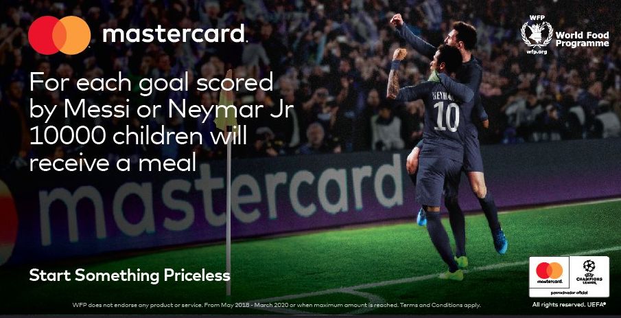 W zeszłym roku Mastercard wraz ze Światowym Programem Żywnościowych ogłosiło inicjatywę „100 Million Meals”, której celem jest zbieranie środków na rzecz głodujących dzieci w Ameryce Łacińskiej i na Karaibach – pisze źródło. W związku ze zbliżającymi się Mistrzostwami Świata w piłce nożnej – czytamy – firma ogłosiła, że każda bramka strzelona przez Neymara oraz Messiego podczas mundialu oraz po nim, do marca 2020 roku, zaowocuje przekazaniem środków na konto WFP.
