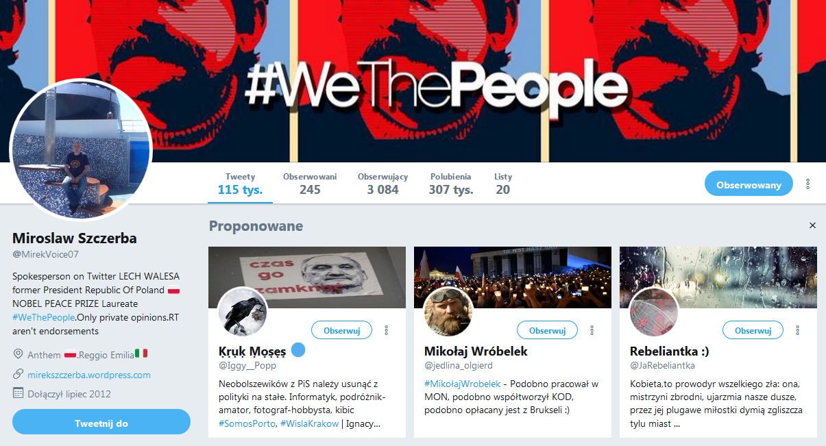 Twittera prezydent Lech Wałęsa prowadzi od czerwca 2016 roku. (mp)