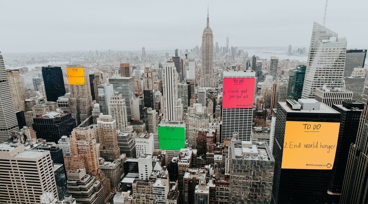 Globalne cele zostały przedstawione jako lista rzeczy do zrobienia w formie wielkich samoprzylepnych kartek w nowej kampanii ONZ. Przypomnienia są rozmieszczone w różnych miejscach na całym świecie. Akcja została zorganizowana z okazji Tygodnia Globalnych Celów, a odpowiada za nią agencja Karmarama.