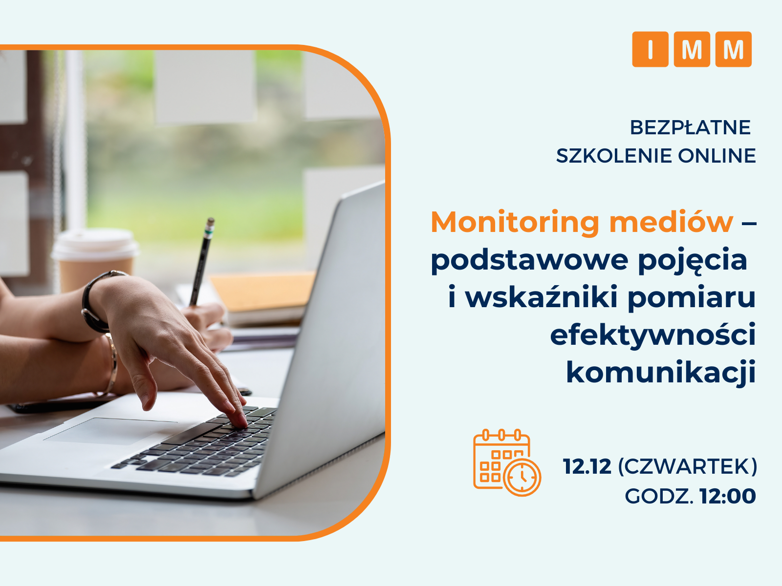 W czwartek 12 grudnia 2024 roku o godzinie 12:00 Instytut Monitorowania Mediów organizuje bezpłatne szkolenie online zatytułowane „Monitoring mediów – podstawowe pojęcia i wskaźniki pomiaru efektywności komunikacji”.