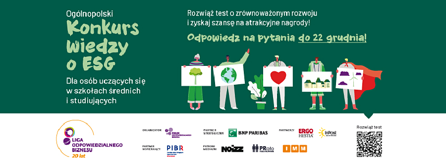 15 marca 2024 roku ogłoszono zwycięzców 12. edycji Ogólnopolskiego Konkursu Wiedzy o ESG. Celem inicjatywy jest rozpowszechnianie idei odpowiedzialności biznesu, zrównoważonego rozwoju oraz wspieranie młodych ludzi, którzy chcą angażować swoją energię w zdobywanie wiedzy.
