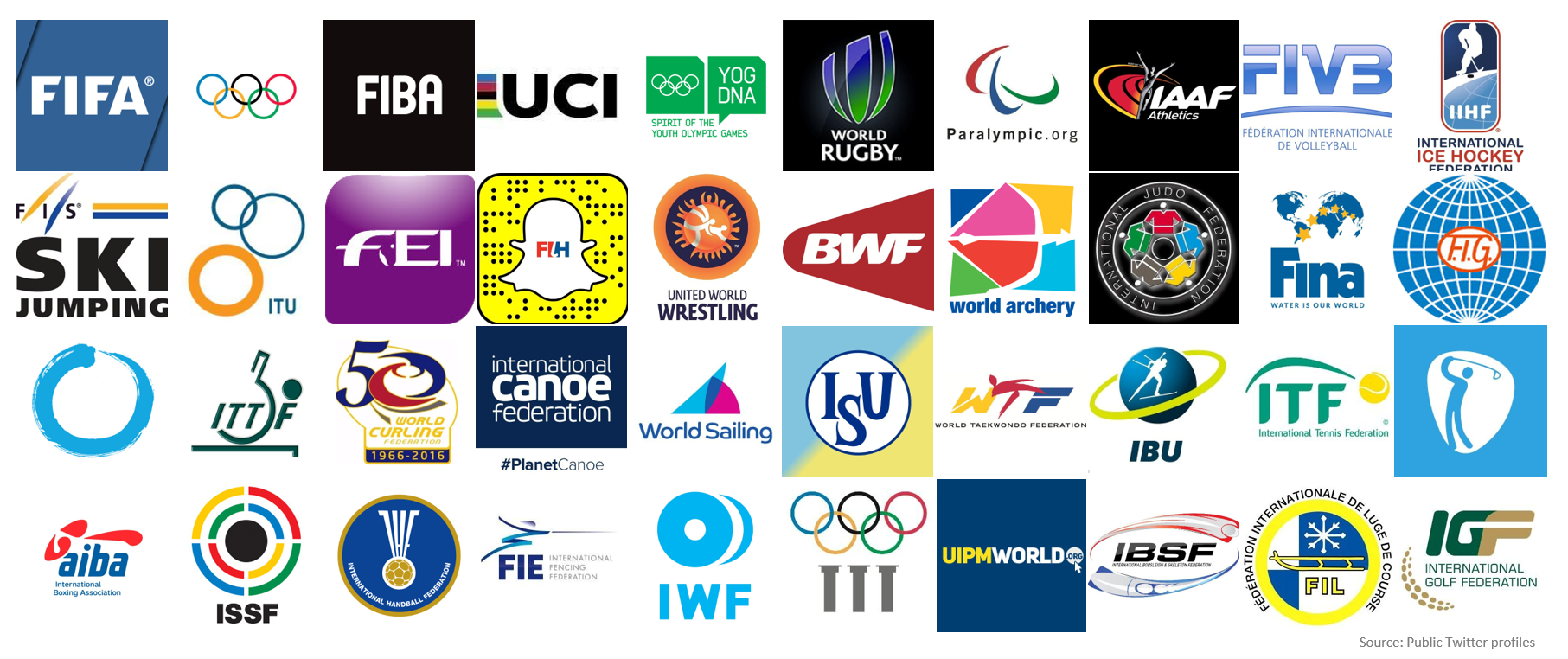 Najpopularniejszym medium sportowym na Twitterze jest portal Inside the Games. Drugie miejsce zajmuje Around the Rings. Na trzecim znalazło się z kolei NBC Olympics. Z kolei dziennikarzem, którego obserwuje najwięcej organizacji sportowych, jest Ollie Williams z BBC. Za nim w zestawieniu znajdują się Ed Houla, założyciel Around the Rings i Alan Abrahamson z portalu 3 Wire News.