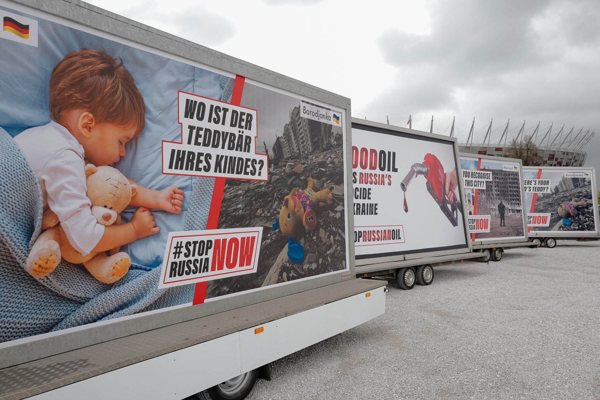 W ramach kampanii w europejskich miastach pojawią się specjalne billboardy z hasłami m.in. w językach angielskim i niemieckim, mówiące o okrucieństwach wojny i bestialskich mordach żołnierzy rosyjskich w Ukrainie. Billboardy umieszczone zostaną m.in. w Berlinie, Paryżu i Rzymie. W tych miastach odbędą się także konferencje polskich dyplomatów, którym w wielu miejscach będą towarzyszyć ambasadorowie Ukrainy.