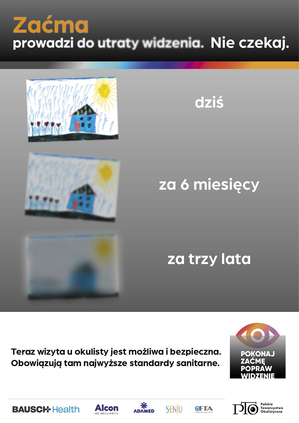 Polskie Towarzystwo Okulistyczne rozpoczęło kampanię społeczną „Pokonaj zaćmę, popraw widzenie”, w której zachęca do nieodwlekania wizyt u okulistów i zabiegów. Jak czytamy, z raportów organizacji, a także ze statystyk Ministerstwa Zdrowia, wynika, że w społeczeństwie pogłębiają się problemy ze wzrokiem, a pandemia nie sprzyja leczeniu. „Lekarze cały czas dokładają wszelkich starań, żeby leczenie było całkowicie bezpieczne dla pacjentów. Niestety, mimo podjętych środków i zapewnień – okuliści obserwują niechęć pacjentów do wykonywania operacji w trakcie pandemii” – czytamy w komunikacie.