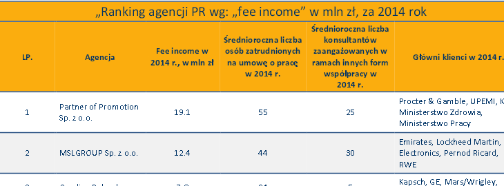 Przede wszystkim widać, że branża nadal się umacnia. Cieszy fakt, że income fee są całkiem przyzwoite, co znaczy, że minęły czasy, kiedy przez branżę PR przelewały się olbrzymie budżety eventowe, gdzie był bardzo wysoki przychód, a stosunkowo niski przychód operacyjny.