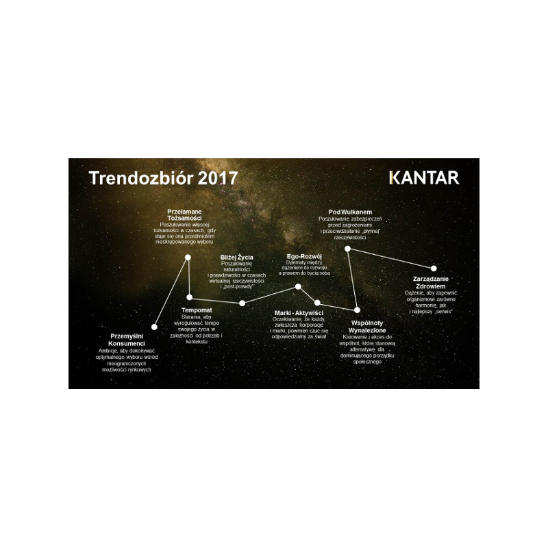 Kantar Trendozbiór 2017 to raport, który może służyć jako źródło wiedzy o konsumentach, ale też materiał warsztatowy, pozwalający realizować projekty koncepcyjne i aktywacyjne – twierdzą autorzy raportu.