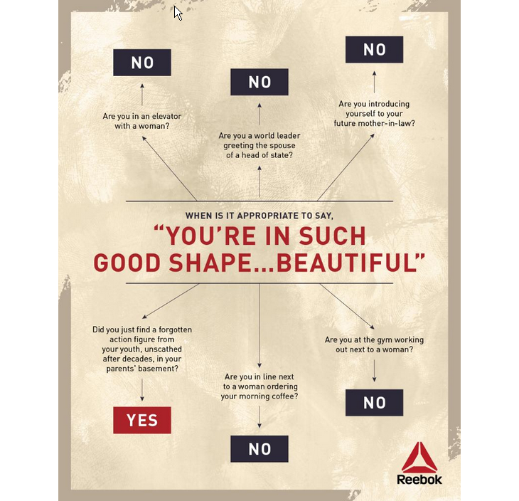 Reebok opublikował na swoim profilu na Twitterze prześmiewczy wpis, do którego dołączył grafikę, na której przedstawia sytuacje, w jakich komentarz prezydenta USA byłby odpowiedni. Ze wszystkich wymienionych przez markę zdarzeń, tylko podczas jednego taka wypowiedź mogłaby być adekwatna – kiedy ktoś dorosły znalazłby swoją zabawkę z młodości w piwnicy rodziców i byłaby ona w nienaruszonym stanie.