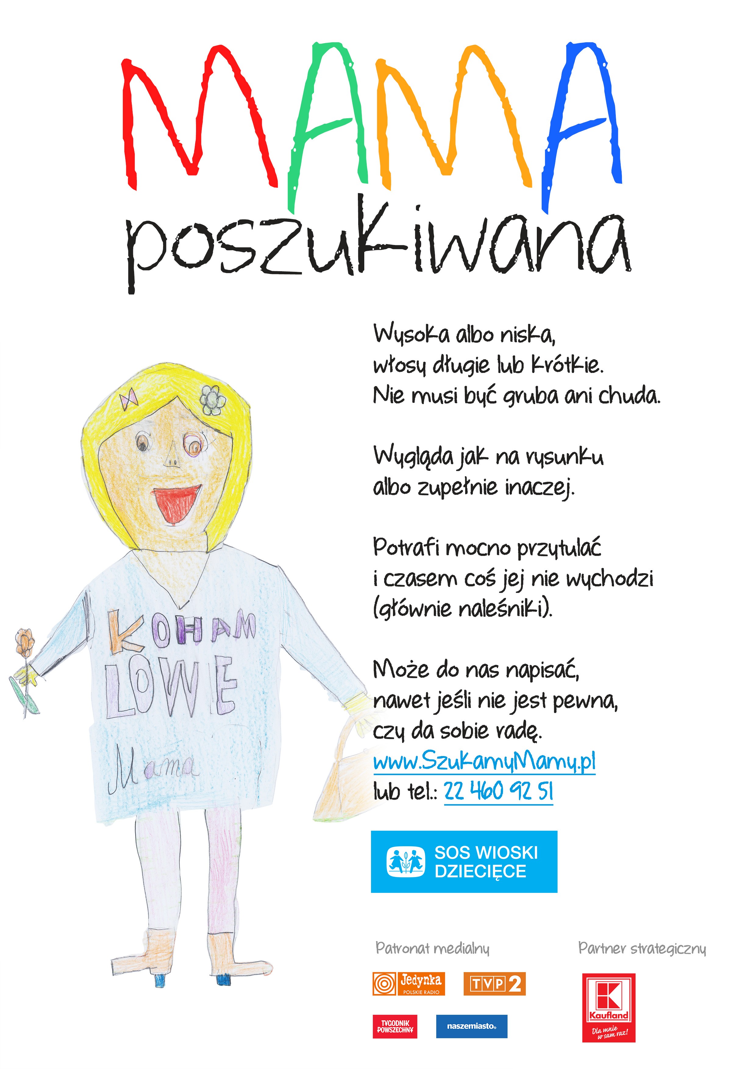 „Szukamy mamy” – tak brzmi nazwa akcji Stowarzyszenia SOS Wioski Dziecięce, której celem jest dotarcie do nowych opiekunów SOS. Mieliby oni stworzyć dom dla opuszczonych i osieroconych dzieci. A tych jest ich w Polsce ponad 20 tys. Ponadto, przedsięwzięcie ma przyczynić się do podniesienia świadomości na temat opieki zastępczej w Polsce.