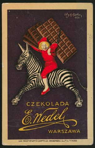 Chłopiec na zebrze, maskotka marki, to do dziś jeden z najbardziej rozpoznawalnych rodzimych brand hero. A ma już ponad sto lat! Zaprojektował go Leonetto Capiello, włoski artysta, nazywany „ojcem nowoczesnej reklamy”. W portfolio karykaturzysty i plakacisty znajdują się takie marki jak Campari czy Pirelli. Cechą charakterystyczną jego prac było umieszczanie postaci na ciemnym tle – tak jest też zakomponowany plakat pokazujący wedlowskiego chłopca na zebrze.