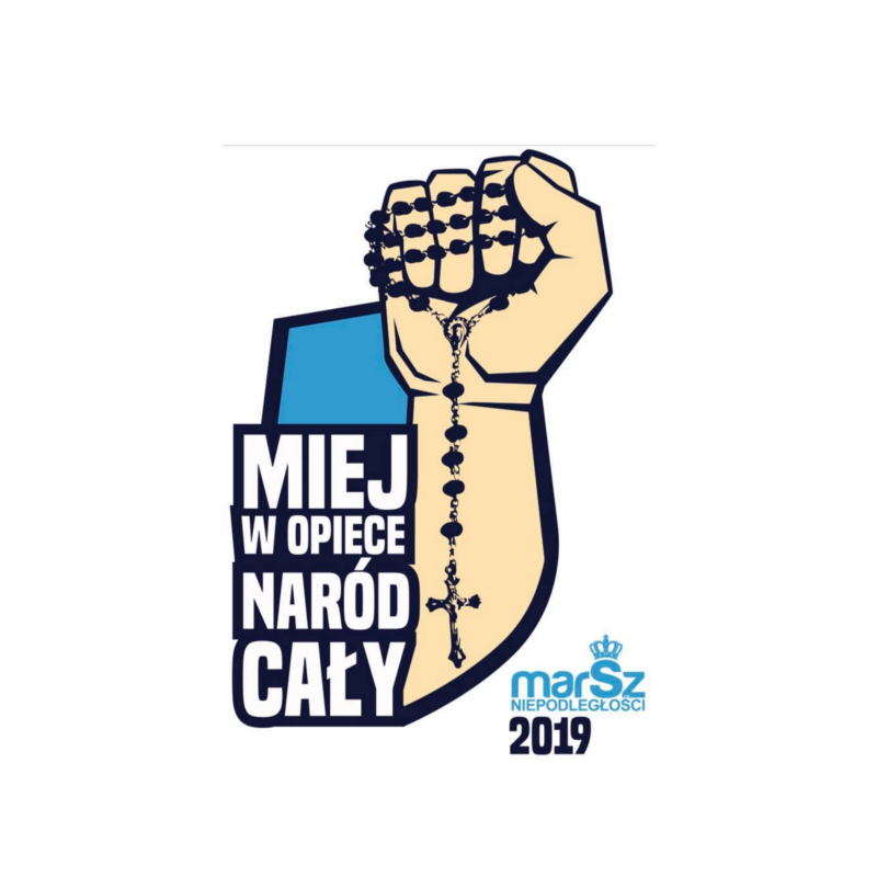 Grafika została opublikowana na facebookowej stronie Marszu Niepodległości. Obok uniesionej pięści, wokół której zawiązany jest różaniec, widać tegoroczne hasło wydarzenia: „miej w opiece naród cały”. Jak podają organizatorzy, „od zawsze łączyło (ono – przyp. red.) Polaków w najtrudniejszych momentach naszej historii”.