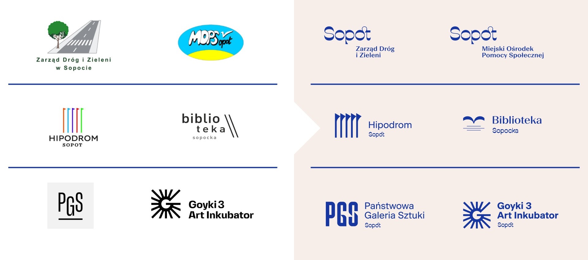 Sopot wprowadza spójne oznakowanie instytucji i jednostek miejskich. Wszystkie znaki są oparte na tym samym kroju pisma i kolorystyce, zachowują jednak odrębny charakter każdej z instytucji. Ma to „budować spójny wizerunek, dodając »sopocki parasol« nad całą strukturą miejskich jednostek i instytucji, z poszanowaniem ich indywidualnego profilu”.