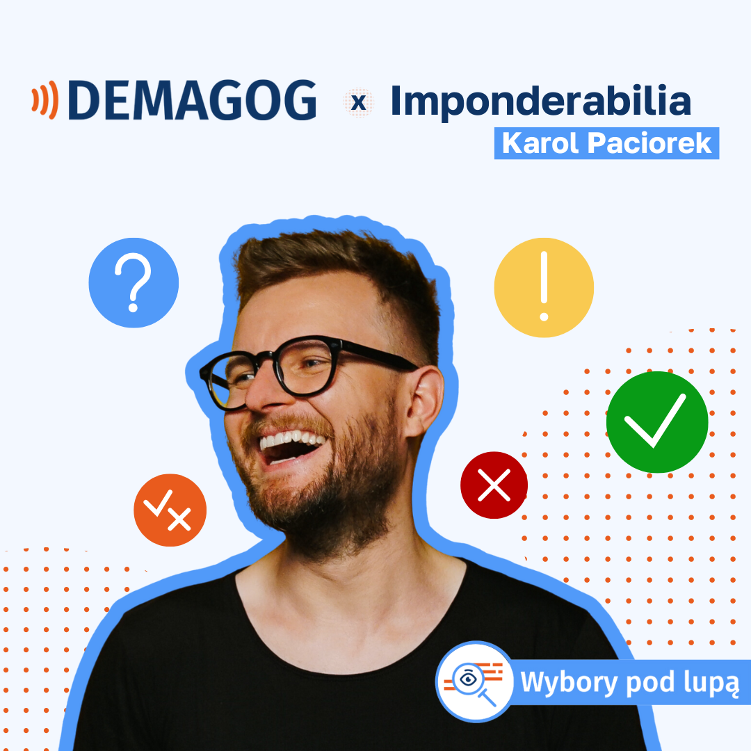 Karol Paciorek ponownie przeprowadzi w Imponderabiliach rozmowy z politykami największych ugrupowań w związku ze zbliżającymi się wyborami parlamentarnymi. Stowarzyszenie Demagog zaczyna współpracę z tym twórcą i będzie weryfikować wypowiedzi polityków, którzy będą gośćmi podcastu.