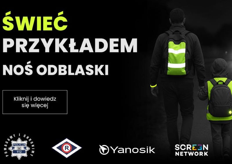 „Świeć przykładem – noś odblaski” – apelują policja, Yanosik i Screen Network w kampanii