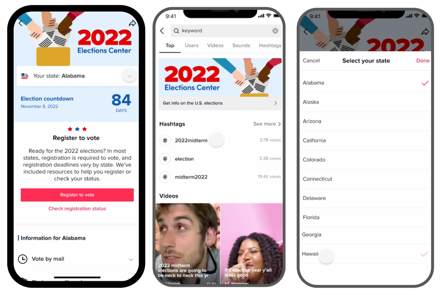 Do treści zidentyfikowanych jako związane z wyborami śródokresowymi w 2022 roku, a także do treści z kont należących do rządów, polityków i partii politycznych w Stanach Zjednoczonych, serwis doda odpowiednie etykiety. Dzięki nim odbiorcy będą mogli przejść do centrum wyborczego i uzyskać informacje o wyborach. TikTok zapowiada też, że zapewni dostęp do popularnych hashtagów, takich jak #elections2022 i #midtermelections, aby każdy, kto szuka treści związanych z tym tematem, mógł łatwo uzyskać dostęp do centrum. Serwis przypomina przy okazji, że użytkownicy mogą w dowolnym momencie zmienić swoje ustawienia, by odfiltrować filmy zawierające słowa lub hashtagi, których nie chcą widzieć w swoich kanałach Dla Ciebie lub Obserwowanych.