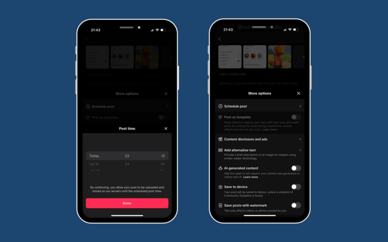 TikTok wprowadził kolejną opcję planowania treści. Od teraz twórcy będą mogli wybrać datę i godzinę publikacji materiału bezpośrednio w edytorze posta w aplikacji – podaje socialmediatoday.com.