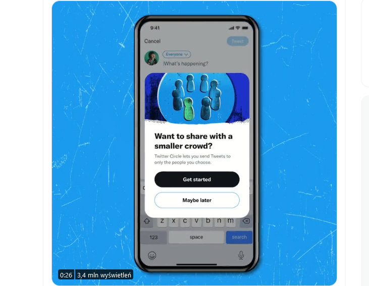 30 sierpnia 2022 roku Twitter poinformował na swoim blogu o nowej funkcji, dzięki której użytkownicy mogą publikować treści skierowane do wybranej grupy znajomych – Twitter Circle.