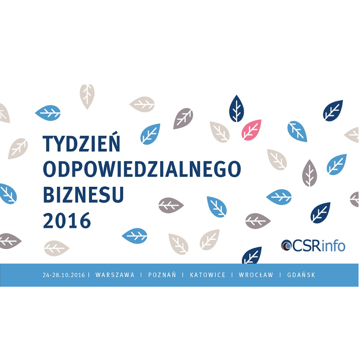 24 października rozpocznie się Tydzień Odpowiedzialnego Biznesu 2016 – cykl wydarzeń wokół tematyki odpowiedzialnego biznesu i zrównoważonego rozwoju: prezentacje, panele ekspertów, ciekawe case’y. Wydarzenia będą odbywać się w pięciu miastach: Warszawie (25.10), Poznaniu (26.10), Katowicach (27.10), Wrocławiu (28.10) oraz Gdańsku (28.10).