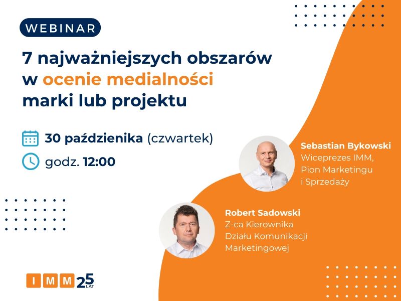 Webinar poprowadzą Sebastian Bykowski, wiceprezes IMM odpowiedzialny za pion marketingu i sprzedaży, oraz Robert Sadowski, zastępca kierownika działu komunikacji marketingowej.