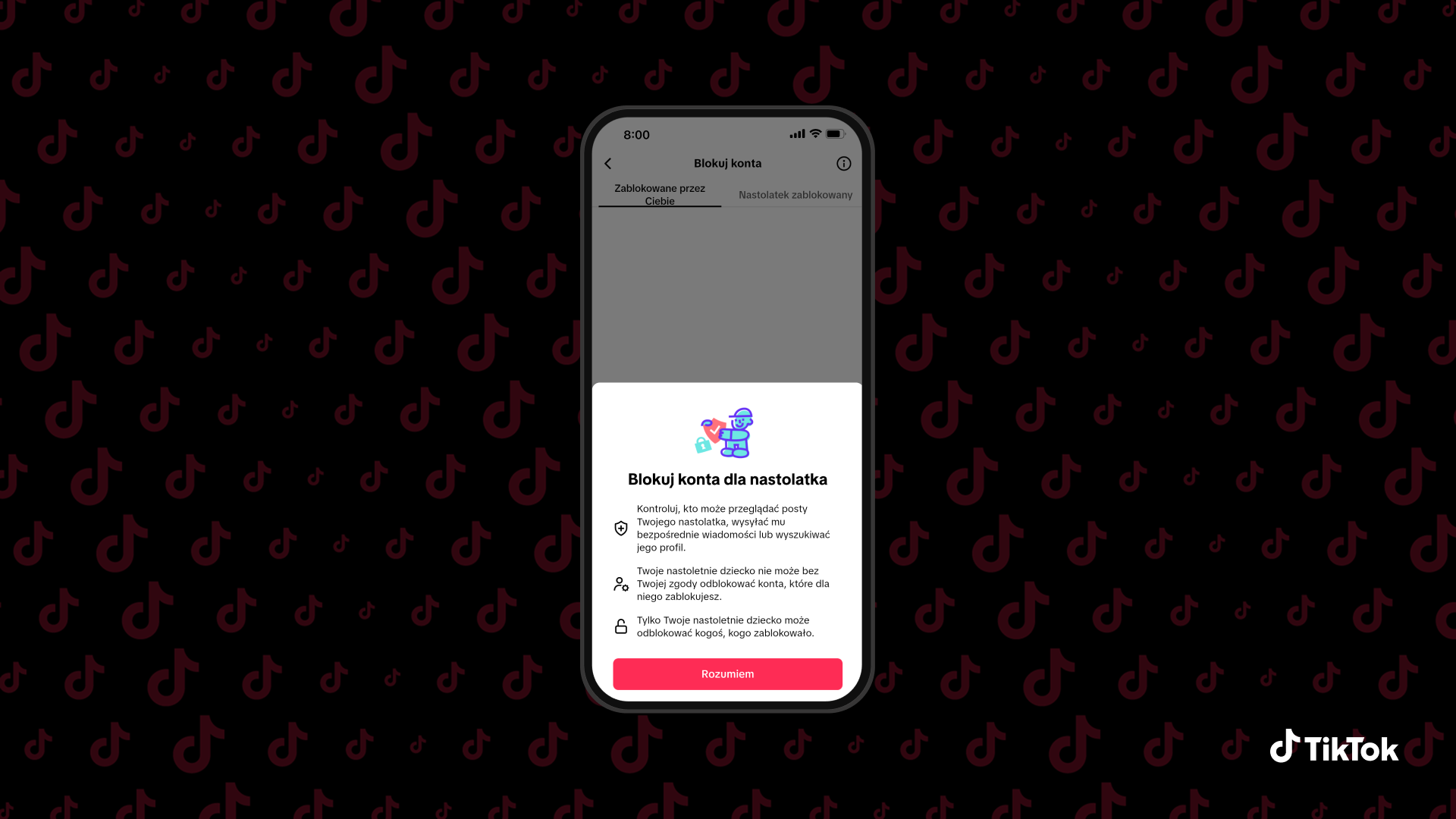 Rozszerzone zostaną też dotychczasowe opcje kontroli, które pozwalały zobaczyć, kogo nastolatek zablokował samodzielnie. TikTok w nadchodzących miesiącach umożliwi rodzicom blokowanie konkretnych kont widocznych dla ich nastolatków. Dzięki tej funkcji będą oni mogli wybrać, które profile mają być całkowicie niewidoczne dla ich dzieci. Nastolatek może złożyć prośbę o cofnięcie blokady, ale ostateczna decyzja należy do rodzica.