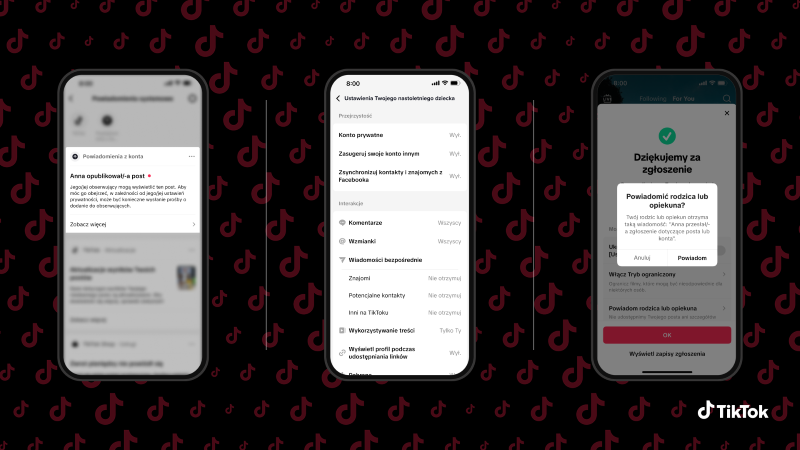 Serwis dodał automatyczne powiadomienia informujące o tym, kiedy nastolatek publikuje wideo, relację lub zdjęcie widoczne dla innych użytkowników TikToka. Ma to pomóc rodzicom w byciu na bieżąco i wspierać otwartą rozmowę na temat tworzonych materiałów, bez ingerowania w kreatywność czy niezależność nastolatków.