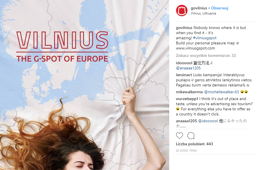 Najnowsza kampania Wilna, promująca je poza granicami Europy, wywołuje mieszane reakcje przez to, że określa stolicę Litwy „punktem G Europy” – opisuje polsatnews.pl. Dwuznaczność jest tu zabiegiem celowym, bo plakat, będący częścią kampanii, też nawiązuje do erotyzmu – czytamy.