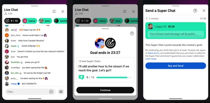 Twórca będzie wyznaczał cel oraz nagrodę dla subskrybentów za pomoc w jego osiągnięciu, jak np. dodatkowy live czy seria Q&A. Na ekranie Super Chatu będzie wyświetlał się cel oraz wyznaczony czas na jego osiągnięcie. Na razie opcja będzie dostępna w wersji testowej jedynie dla części youtuberów.