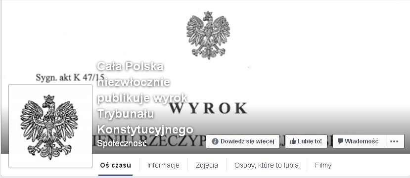 PiS najpierw nie chciał ujawnić wyroku TK z 3 grudnia. Wtedy właśnie powstał fanpage zachęcający do publikacji dokumentu. 9 marca liczba fanów strony znacznie wzrosła, co stanowi odpowiedź na bojkot posiedzenia Trybunału z 8 marca, przez rząd, oraz orzeczenie wydane dzień później – podaje źródło.