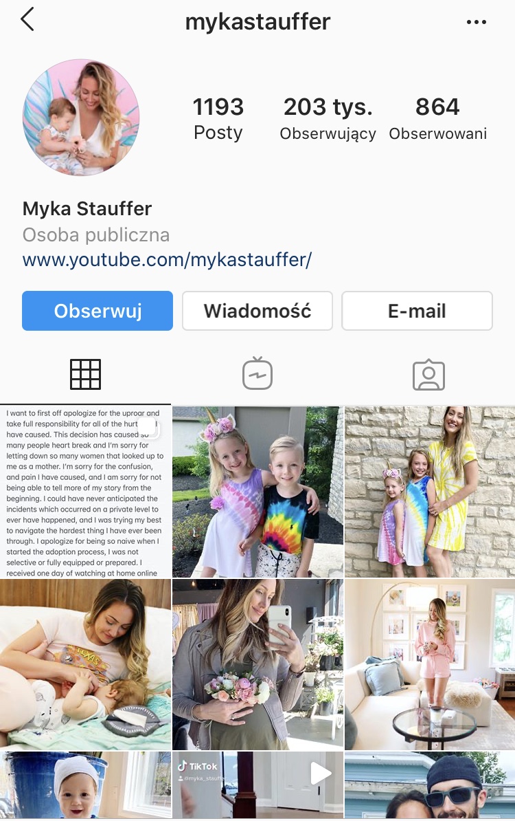 „Ta decyzja złamała serce wielu ludziom i przepraszam, że zawiodłam tyle kobiet, które uważały mnie za matkę” – źródło cytuje youtuberkę. Czytamy, że Myka Stauffer przyznała, że była „naiwna, głupia i arogancka” oraz nie była w pełni przygotowana do adopcji.