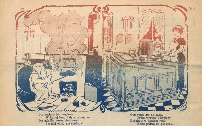 Do nowych urządzeń trzeba było konsumentów przyzwyczaić. Miały do tego służyć specjalnie zaaranżowane sklepy, w których organizowano warsztaty gotowania, pieczenia i prasowania – oczywiście na gazie. „Nawet na pokaz gotowania prędkich dań, przeznaczone specjalnie do pojedynczych osób, zawodowo pracujących pań i żądnych nauki gotowania panów, przyszły tłumnie matki rodzin i gospodynie dużych domów – tylko z tymi panami, żądnymi wiadomości kulinarnych, było nieco gorzej – przyszło ich raptem dwóch!” – relacjonował, zorganizowany przez Związek Pań Domu Kurier, warszawski kurs gotowania na gazie Kurjer Warszawski w 1933 roku.