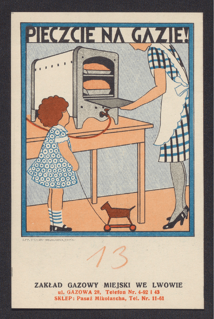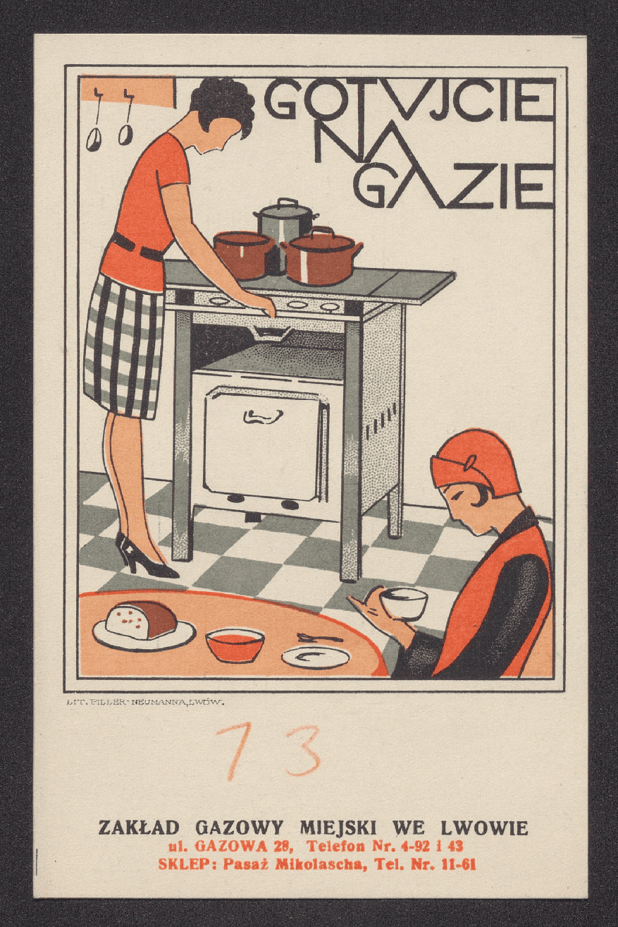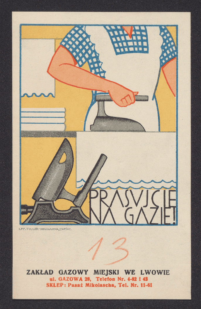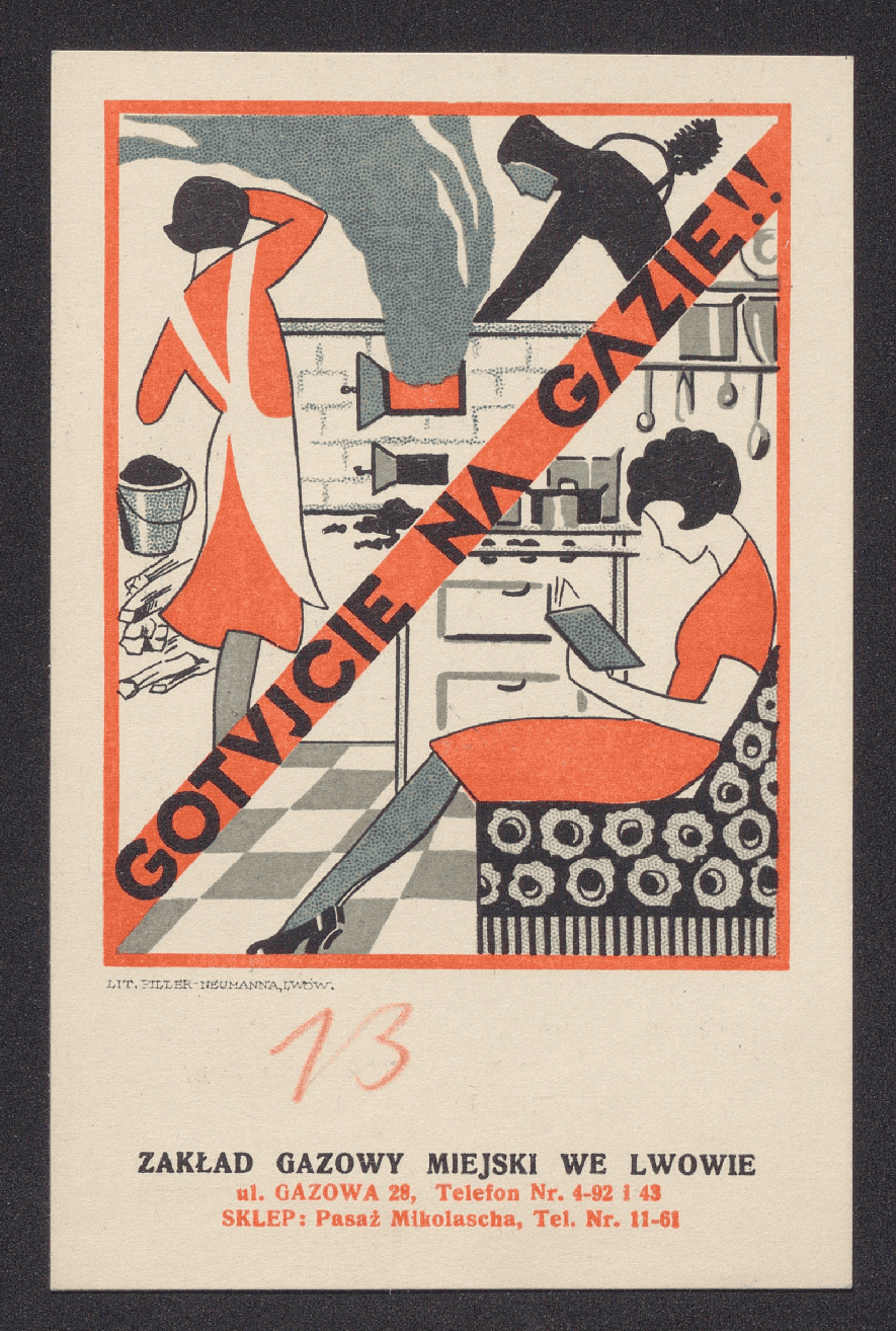 Ulotki, reklamy, grafiki i ilustracje zachęcające do korzystania z urządzeń zasilanych gazem podkreślały wydajność nowego paliwa. W komunikacji nie wahano się sięgnąć do reklamy negatywnej – możemy przeczytać m.in., że „żelazko z węglem to wróg bielizny, wypala dziury i zostawia blizny”. Inne hasło, które pojawiło się na plakacie informowało, że „Gaz to jedynie kulturalne paliwo”. Postaci rysowane w reklamach są ubrane w modne stroje, ukazuje się je nowoczesne i praktyczne. W ramach promocji powstawały kalendarze i całe ilustrowane książeczki, które przez rymowane wierszyki miały zachęcić do korzystania z paliwa. Nawet „Wielki ilustrowany sennik egipsko-chaldejski” z 1940 roku zawiera to hasło – oznaczało wesołą zabawę i szybkie spełnienie życzeń.