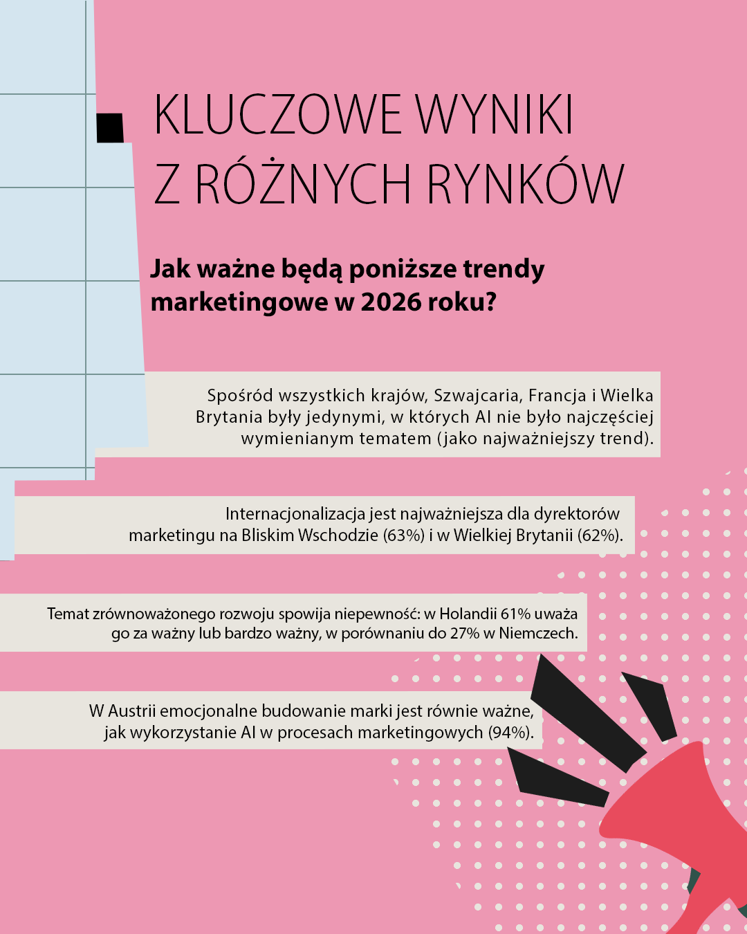 Ogólny optymizm wśród CMO słabnie, a coraz więcej z nich martwi się sytuacją ekonomiczną. 51 proc. ankietowanych spodziewa się stabilizacji w 2026 roku. Tylko 20 proc. oczekuje poprawy, podczas gdy 29 proc. zakłada pogorszenie. Największy optymizm odnotowano na Bliskim Wschodzie, gdzie aż 52 proc. CMO oczekuje poprawy.