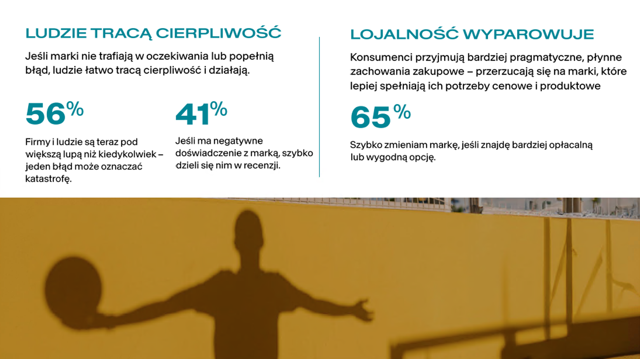 Na znaczeniu traci lojalność. 65 proc. badanych deklaruje, że szybko zmieni markę, jeśli znajdzie bardziej opłacalną lub wygodniejszą alternatywę. 56 proc. twierdzi, że firmy są dziś pod większą obserwacją niż kiedykolwiek wcześniej, a 41 proc. w przypadku negatywnego doświadczenia natychmiast publikuje krytyczną opinię. Decyzje zakupowe coraz częściej mają charakter pragmatyczny i sytuacyjny.