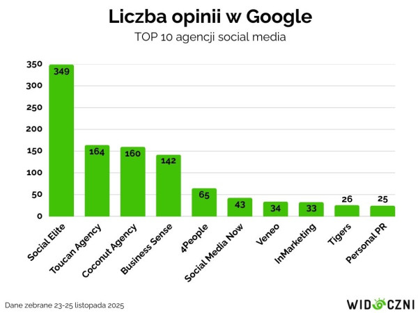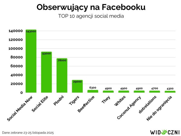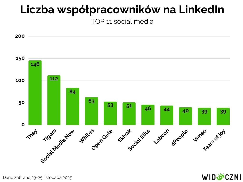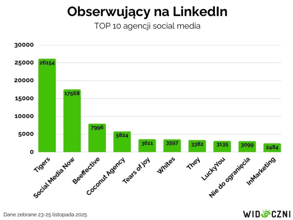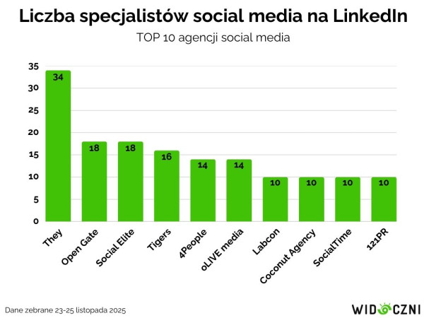 Wszystkie dane z rankingu zostały zebrane w dniach 23-25 listopada 2025 roku. Uwzględniono tam ogólną liczbę pracowników na LinkedInie, liczbę specjalistów social media na LinkedInie, udział pracowników social media w całym zespole, popularność profilu firmowego na LinkedInie, liczę obserwujących na Facebooku i Instagramie, opinie i średnią ocen w Google’u, staż na rynku oraz lokalizację agencji