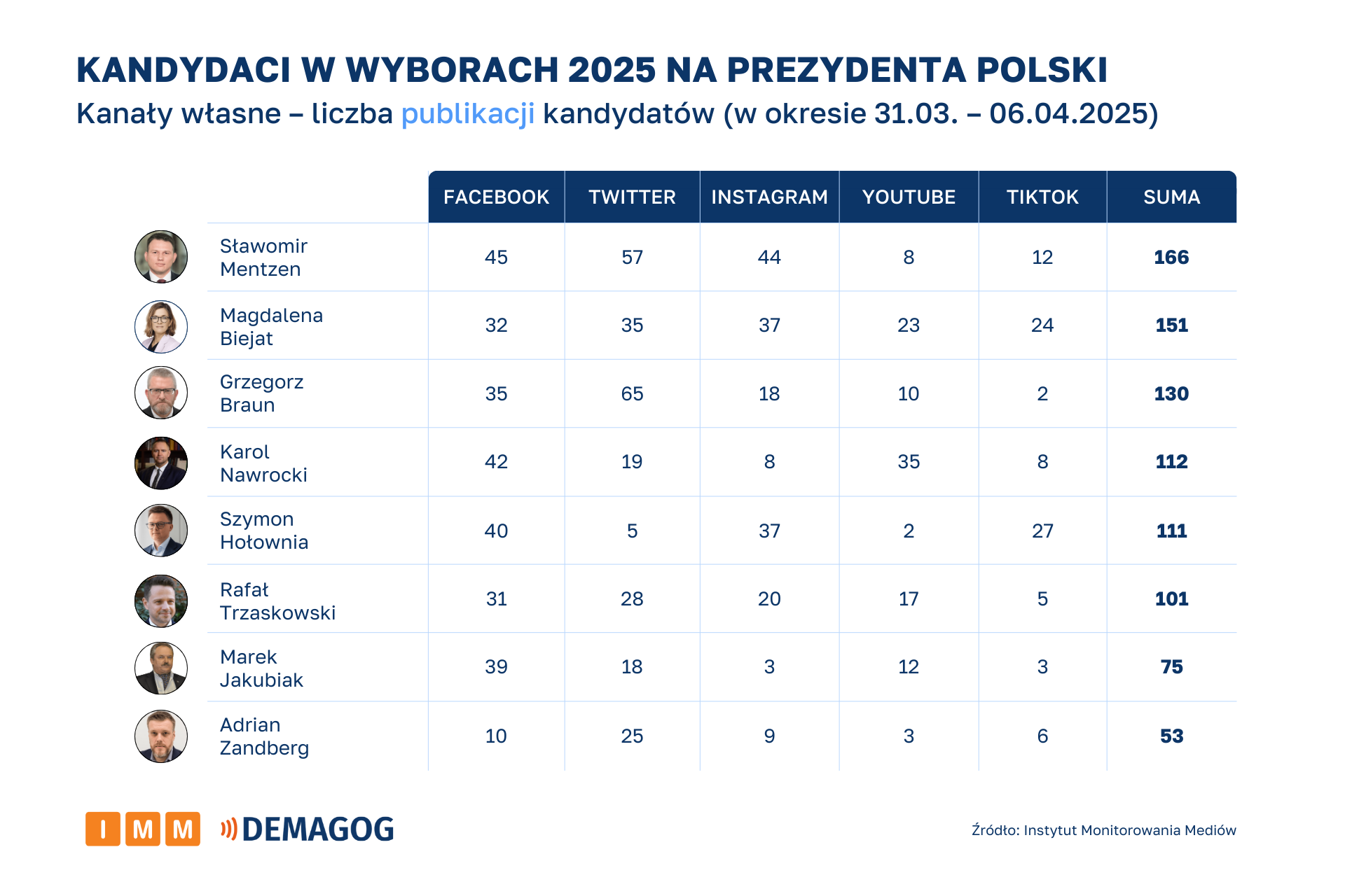 Czytaj też: Kandydaci na prezydenta w mediach. Mentzen liderem w socialach