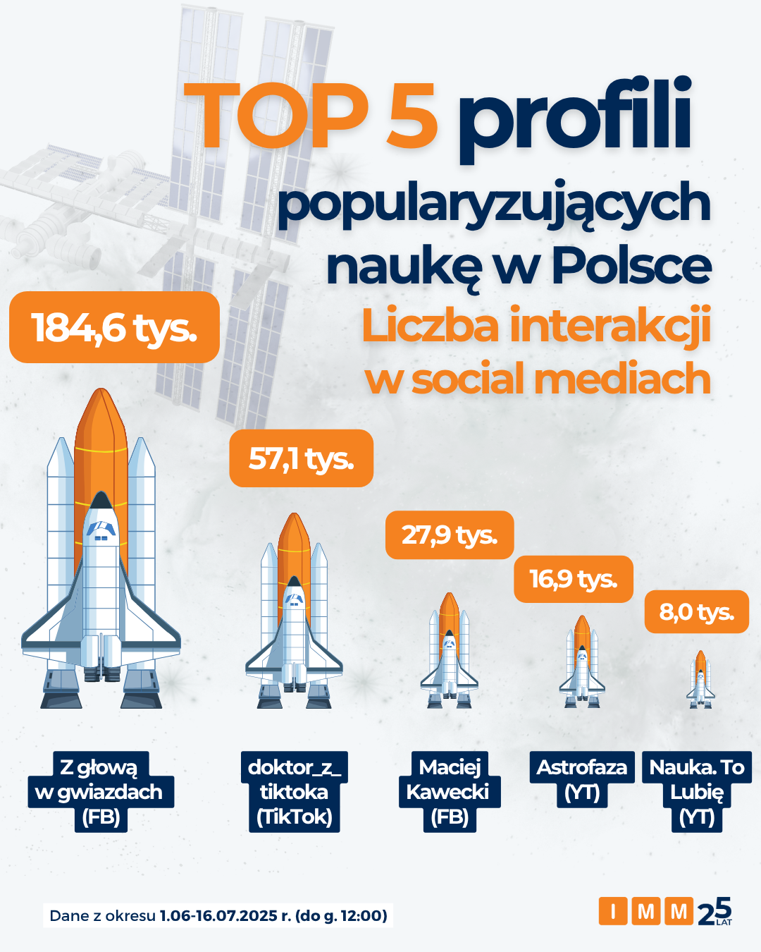 Misja Uznańskiego-Wiśniewskiego była momentem przełomowym dla twórców internetowych popularyzujących naukę. Wśród najbardziej angażujących profili w badanym przez IMM okresie są: Z głową w gwiazdach, który zanotował 184,6 tys. interakcji, oraz Doktor_z_Tiktoka – 57,1 tys. Wysokie wyniki osiągnęli również Maciej Kawecki (27,9 tys.), Astrofaza (16,9 tys.) czy Nauka. To Lubię (8 tys.).