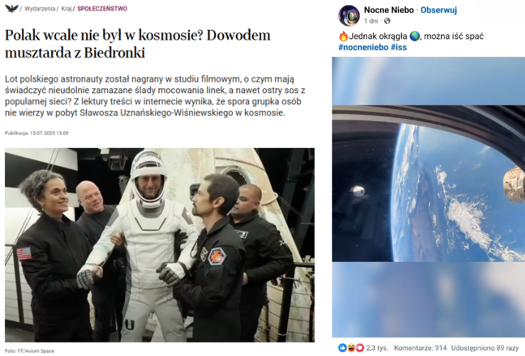 Choć wśród użytkowników social mediów dominowały komentarze pozytywne, nie brakowało głosów podważających autentyczność misji. Pod filmami Uznańskiego-Wiśniewskiego – szczególnie na TikToku – pojawiały się stwierdzenia, że „to wszystko nagrane w studiu” albo „Ziemia jest płaska”. Do wątku szerzenia fake newsów odnosiły się także mainstreamowe redakcje i wysoko zasięgowe kanały o tematyce popularnonaukowej.