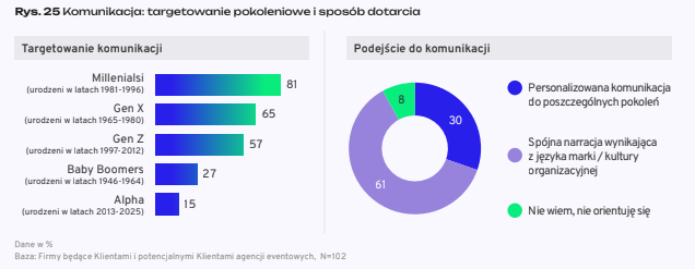 Z raportu wynika także, że 61 proc. marketerów oczekuje od agencji ofert uwzględniających personalizację pokoleniową. Dla 63 proc. firm aspekt ten jest istotny przy eventach wewnętrznych. W przypadku wydarzeń zewnętrznych wskaźnik ten wynosi 57 proc.